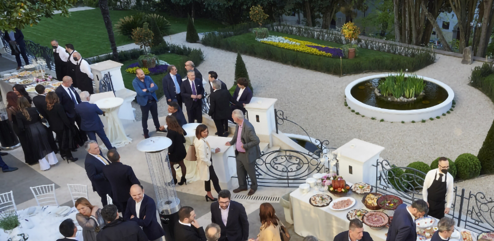 Villa Augusta is the perfect venue for corporate events thanks to its strategic location on the outskirts of Rome, just 15 minutes from Rome Ciampino Airport. It offers indoor rooms with a capacity of up to 150 people and a large outdoor marquee capable of hosting up to 200 guests.